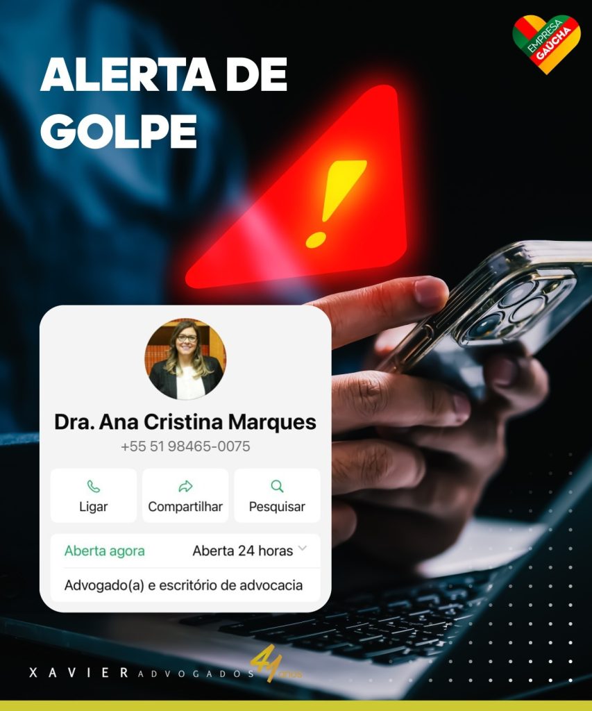 Alertamos todos os nossos clientes que golpistas estão se passando pela advogada Ana Cristina Marques Cardoso Quevedo, sócia da área trabalhista do nosso escritório, por