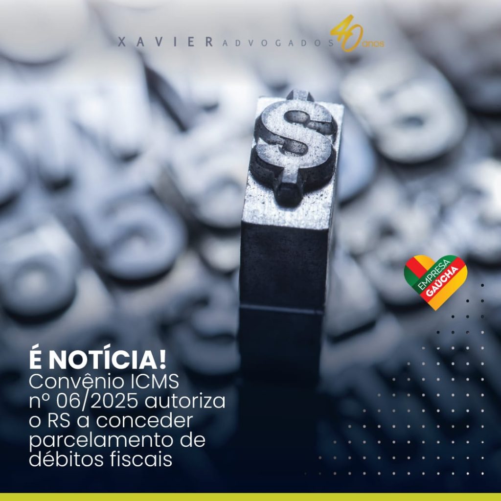 Notícia Convênio ICMS nº 06/2025 autoriza o RS a conceder parcelamento de débitos fiscais No dia 20/01/2025 foi publicado o Convênio ICMS nº 06/2025 que permite ao Estado do Rio Grande do Sul conceder parcelamento em até 120 parcelas Continue lendo » 22 de janeiro de 2025